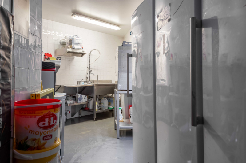 Toiletten, aparte keuken met afwashoek, berging en technische ruimte. Grote koelruimte.