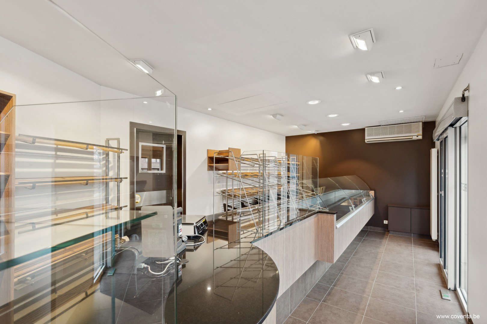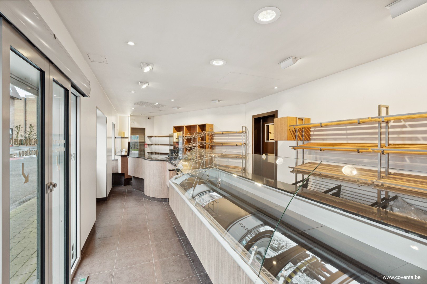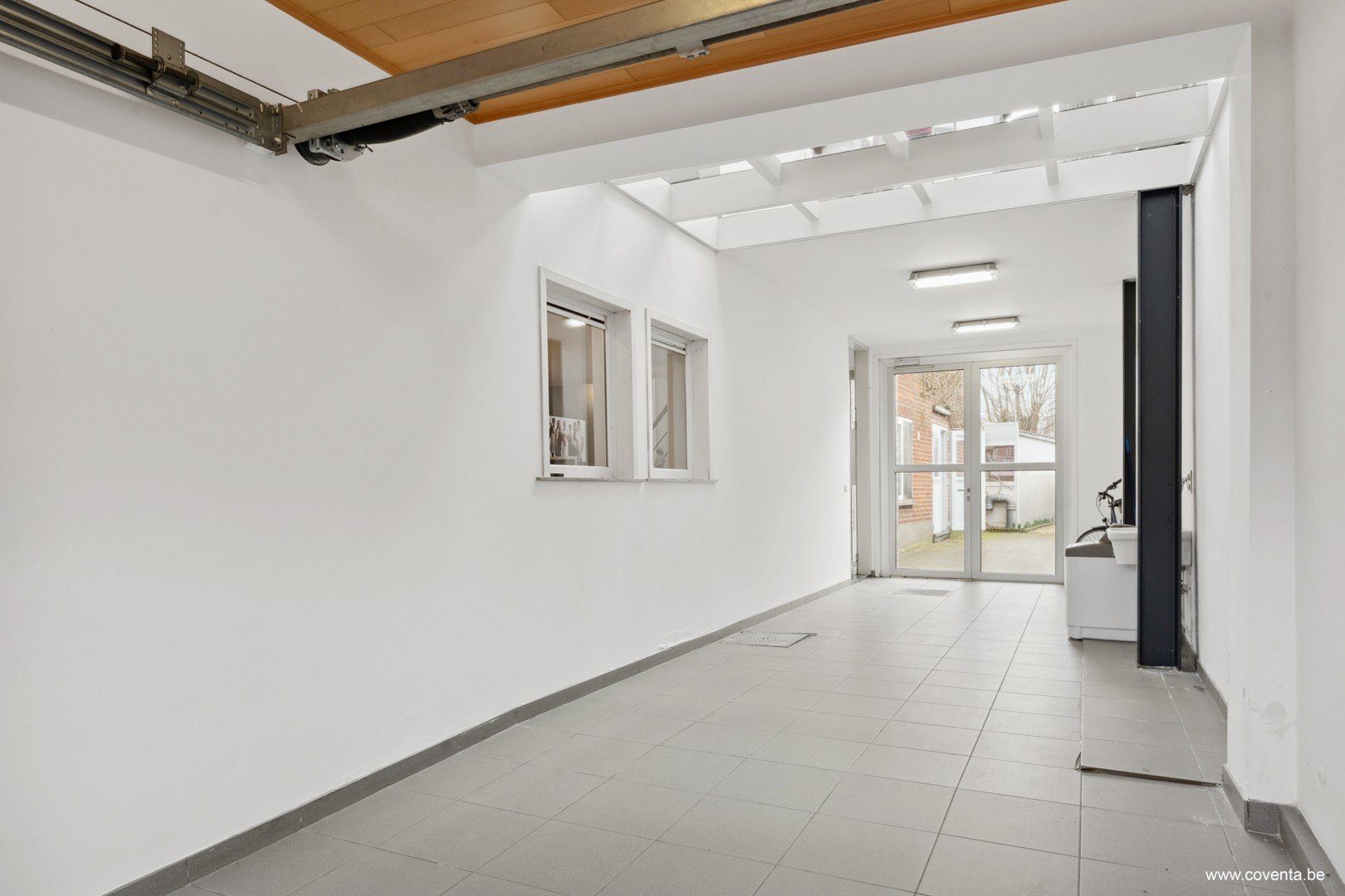 gelijkvloers: Grote dubbele garage met plaats voor minstens 2 wagens en extra opslagruimte, eetkamer met open keuken, gastentoilet, voormalige winkelruimte (voormalige bakkerij) ideaal voor een zelfstandige activiteit, kelder, atelier van +-65m² met betonnen zolderverdieping (ideaal als werkruimte of opslag);