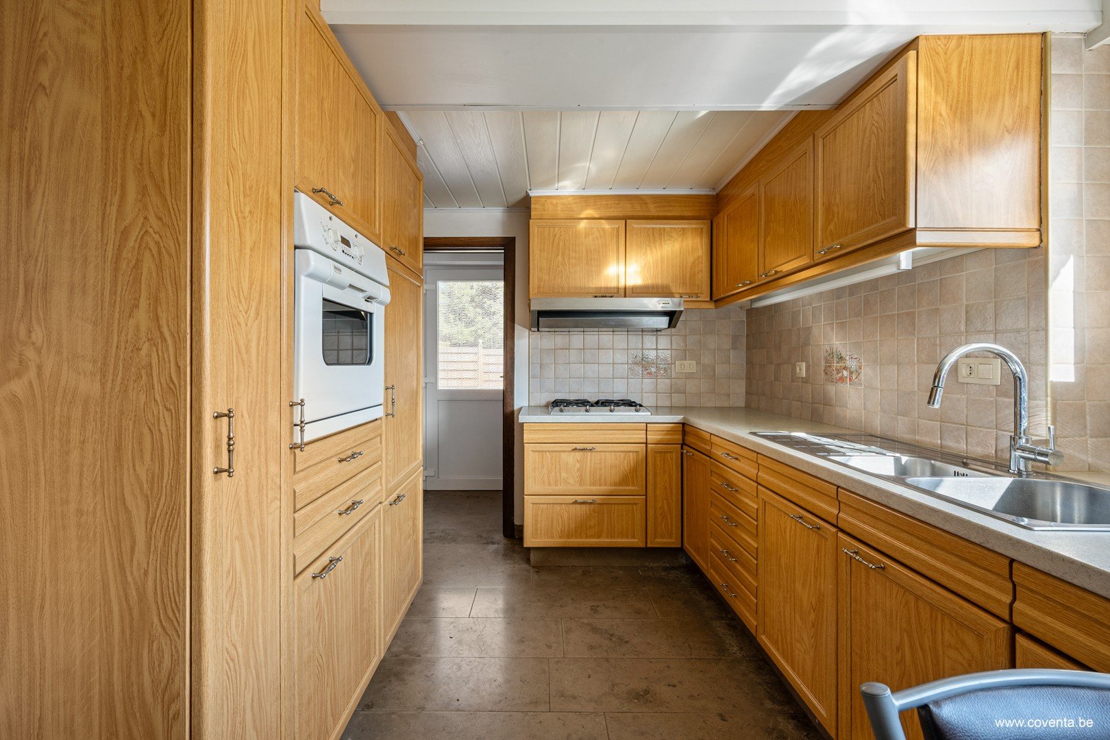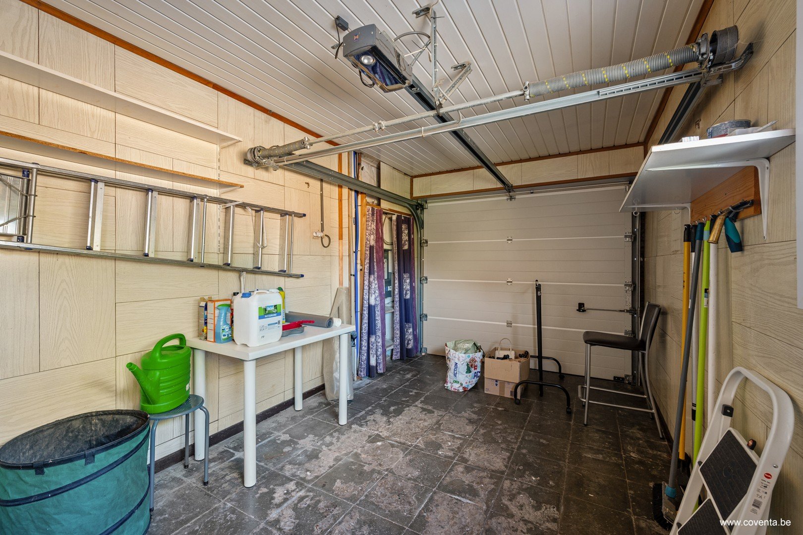 Gelijksvloer: Inkomhal, lichtrijke woonkamer/eetkamer, ruime keuken met toegang tot de kelder, gastentoilet en inpandige garage.