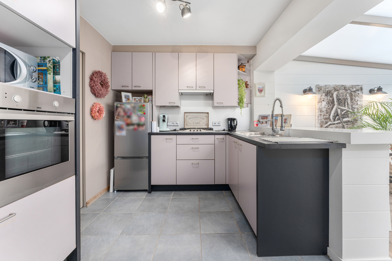 Bij het binnenkomen voel je je meteen thuis. De lichtrijke en sfeervolle leefruimte vormt het hart van de woning en straalt warmte en gezelligheid uit. Aansluitend vind je de volledig ingerichte keuken, die in open verbinding staat met de tuinkamer/eetruimte.