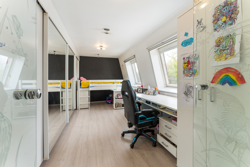 Op de verdieping bevinden zich drie ruime slaapkamers, elk met ingebouwde kasten op maat en veel opbergruimte. De stijlvolle badkamer is uitgerust met zowel een ligbad als een inloopdouche, ideaal voor gezin of koppels die comfort hoog in het vaandel dragen.