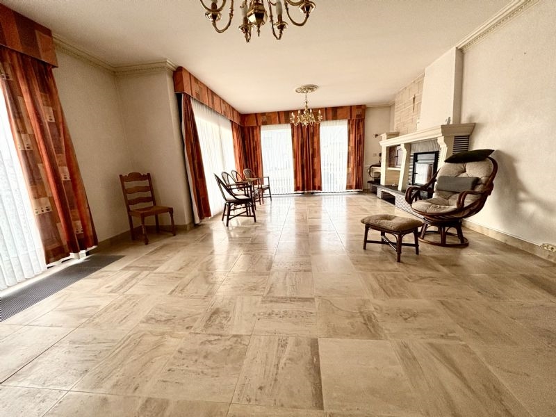 Grote gelijkvloerse villa met 3 garages, 2 veranda’s, 2 slpks en grote tuin. Opp 757m². (Ref.16939)