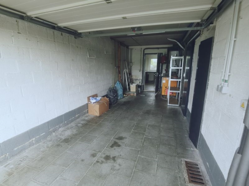 Grote hoekwoning met garage en oprit vooraan te Rollegem (bij Kortrijk), omvattende o.a. op het GELIJKVLOERS: