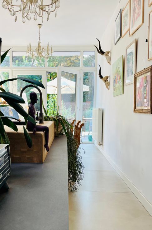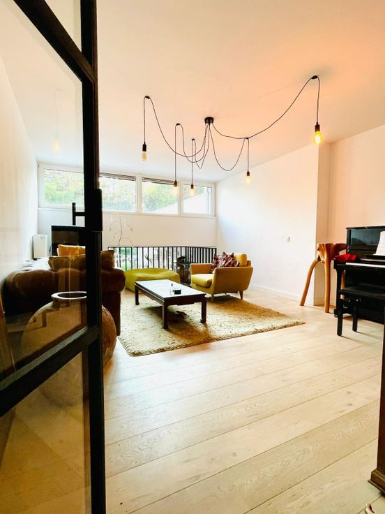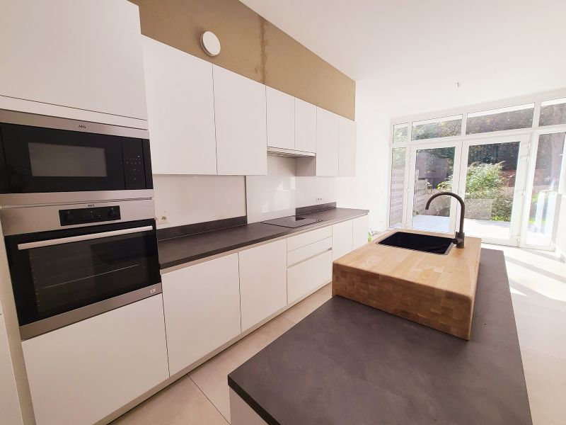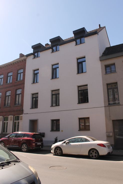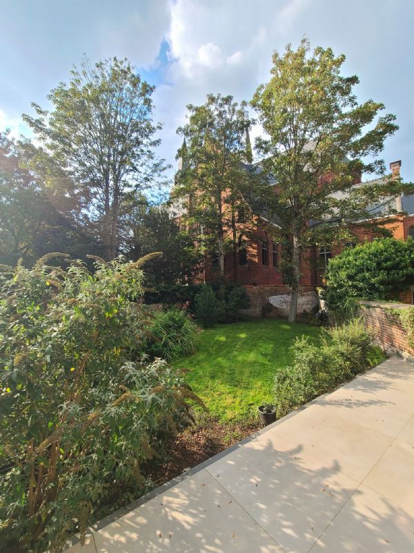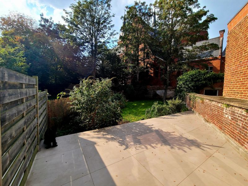 Modern, lichtrijk, ruim, energiezuinig en origineel triplex-appartement met mooie stadstuin en drie slaapkamers te koop in het centrum van Ronse.