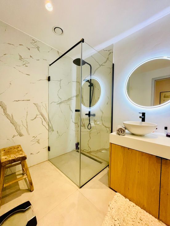 -Op het gelijkvloers bevindt zich ook de badkamer en een apart toilet.