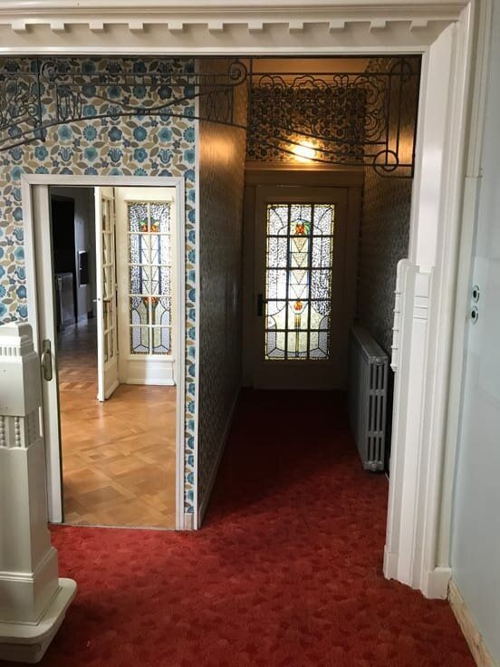 Majestueus herenhuis met authentieke elementen en art-deco elementen, volledig onderkelderd met 8 slaapkamers en garage. Opp 306m². (Ref.17055)