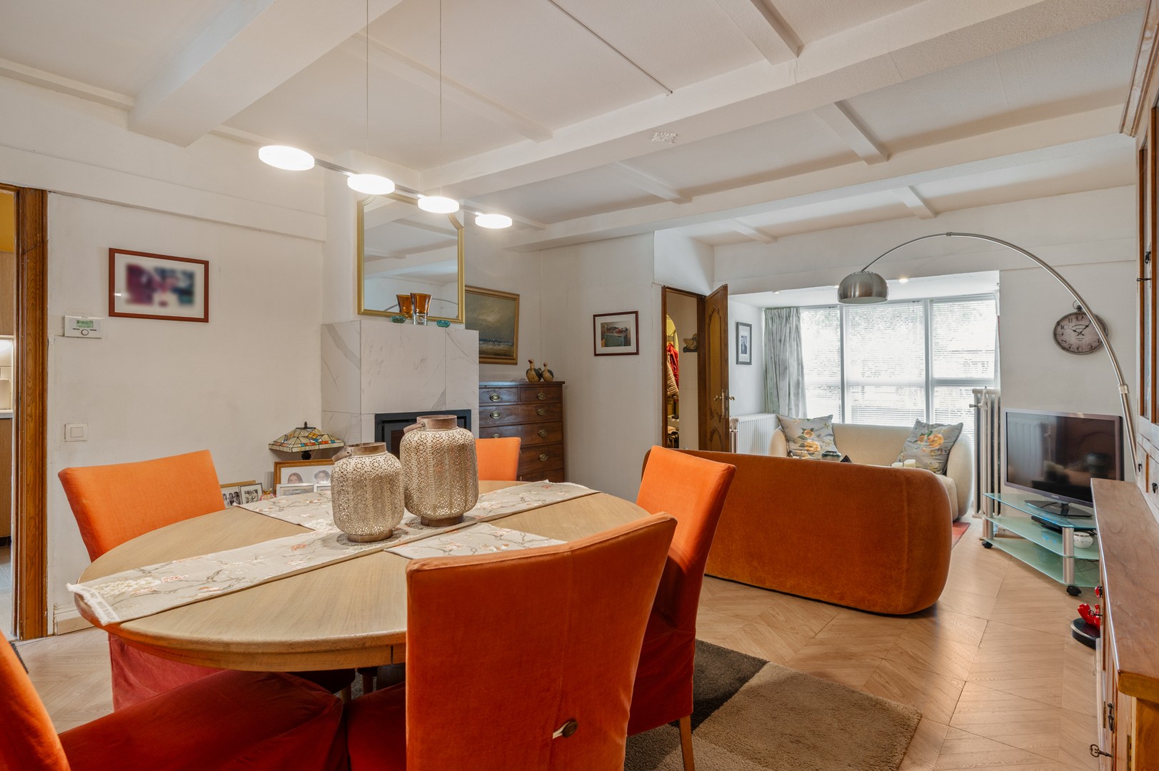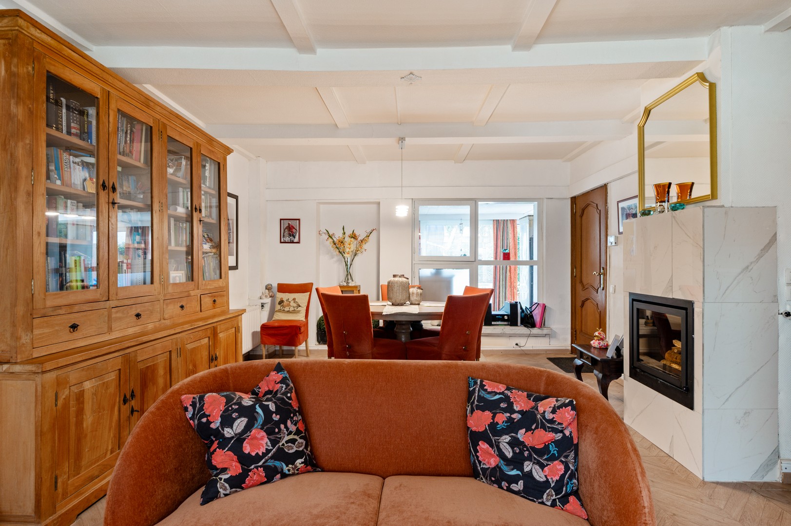 - Lichtrijke leefruimte: via keuken wandelt u de ruime leefruimte in. Daar komt veel licht binnen dankzij de grote raampartijen aan beide zeiden. Aan de straatzijde van de woning is er een knus salon voorzien om heerlijk in neer te vlijen. Aan de andere kant van de ruimte staat de eettafel. Middenin de leefruimte is een open haard terug te vinden. Via de leefruimte krijg je toegang tot de keuken en de inkomhal.