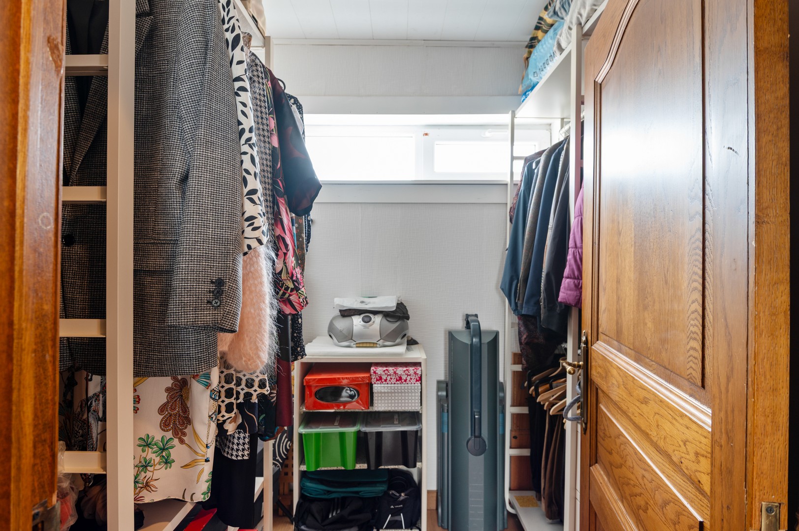 - Dressing: naast de andere slaapkamers is de 3de mogelijke slaapkamer terug te vinden. Deze wordt momenteel gebruikt als dressing, maar kan ook als bureauruimte, speelkamer of kinderkamer gebruikt worden. Deze kamer werd voorzien van kleine ramen, die nog steeds de ruimte voldoende belicht.