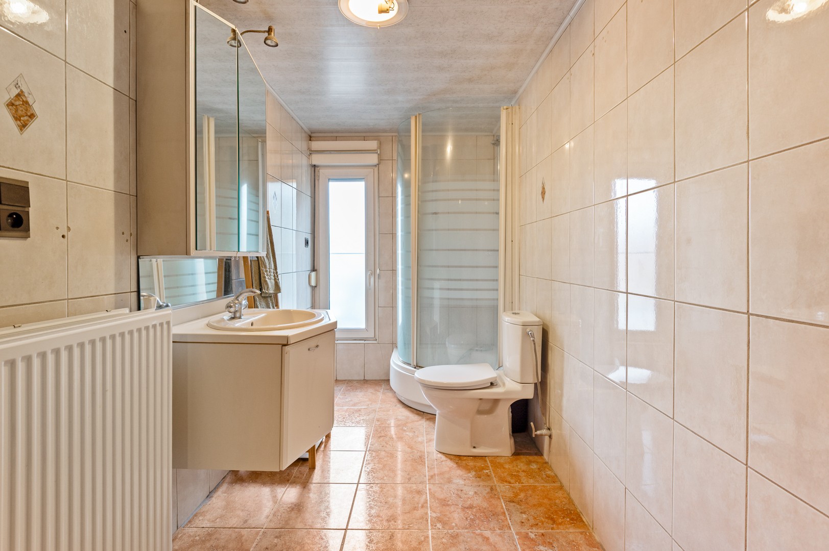 - Badkamer met raam: de woning heeft een frisse, witte badkamer. Het raam zorgt voor licht en verse buitenlucht. De badkamer heeft alles wat u nodig heeft. Een wandmeubel met spoelbak, een spiegelkast, een douche en een toilet.