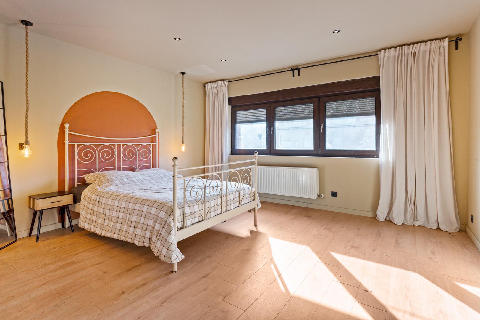 - 2 slaapkamers: via de witgeschilderde houten trap bereik je de eerste verdieping. Daar vind je twee mooie slaapkamers van ca. 11 m² en 18 m². De kleinste kamer beschikt over een handige ingemaakte kast met schuifdeuren. Beide kamers zijn voorzien van manuele rolluiken.