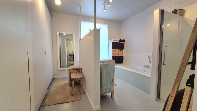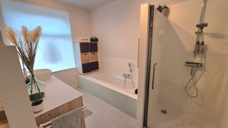 •Grote badkamer uitgerust met: Inloopdouche, bad, lavabo, aparte wasplaats/dressing