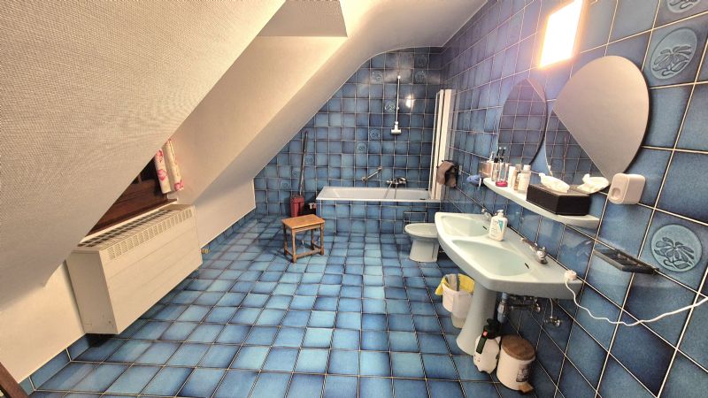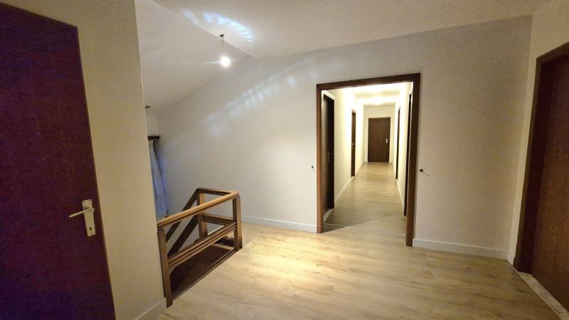 Op de verdieping bevinden zich vijf volwaardige slaapkamers en een badkamer, wat deze woning ideaal maakt voor grote gezinnen of wie extra ruimte nodig heeft voor bureau, hobby of logeerkamer.