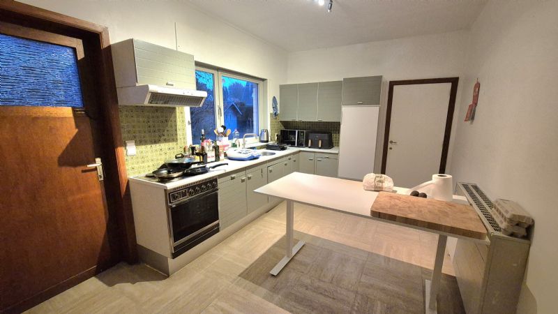 Bij het binnenkomen word je verwelkomd in een ruime inkomhal die toegang biedt tot de lichtrijke leefruimte met zicht op de tuin. De aangrenzende eetruimte en keuken vormen samen het hart van de woning, perfect voor gezellige familiemomenten.