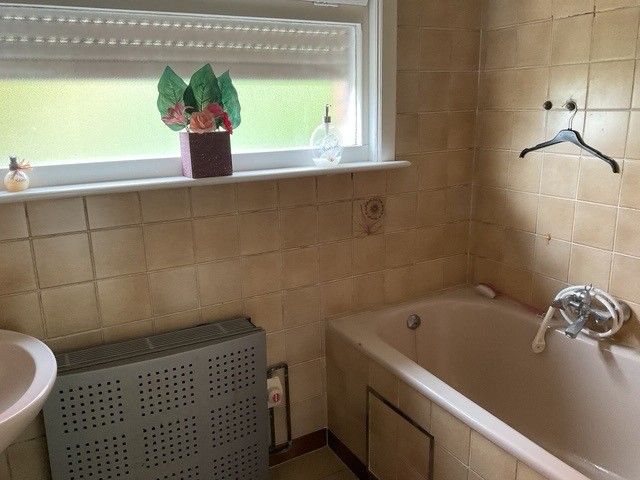 •Badkamer met ligbad en lavabo
