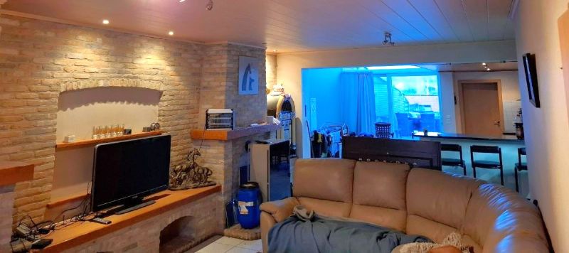 •Gezellige leefruimte met zithoek en houtkachel + recente pelletkachel (overname pelletkachel bespreekbaar met eigenaar)