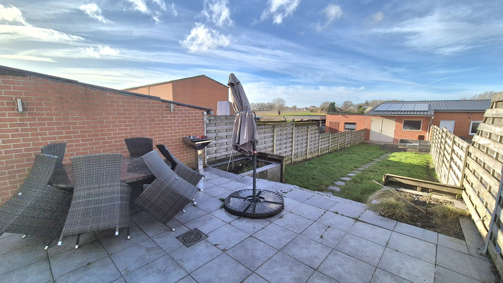 Divers: 12 zonnepanelen (geïnstalleerd in 2025). Dubbel glas. Twee regenwaterputten (totaal 10.000 liter). Conforme elektrische keuring. Geen renovatieplicht (EPC-score D). Een zorgeloze, energie-efficiënte woning met sterke praktische troeven op een rustige ligging in Vlamertinge.