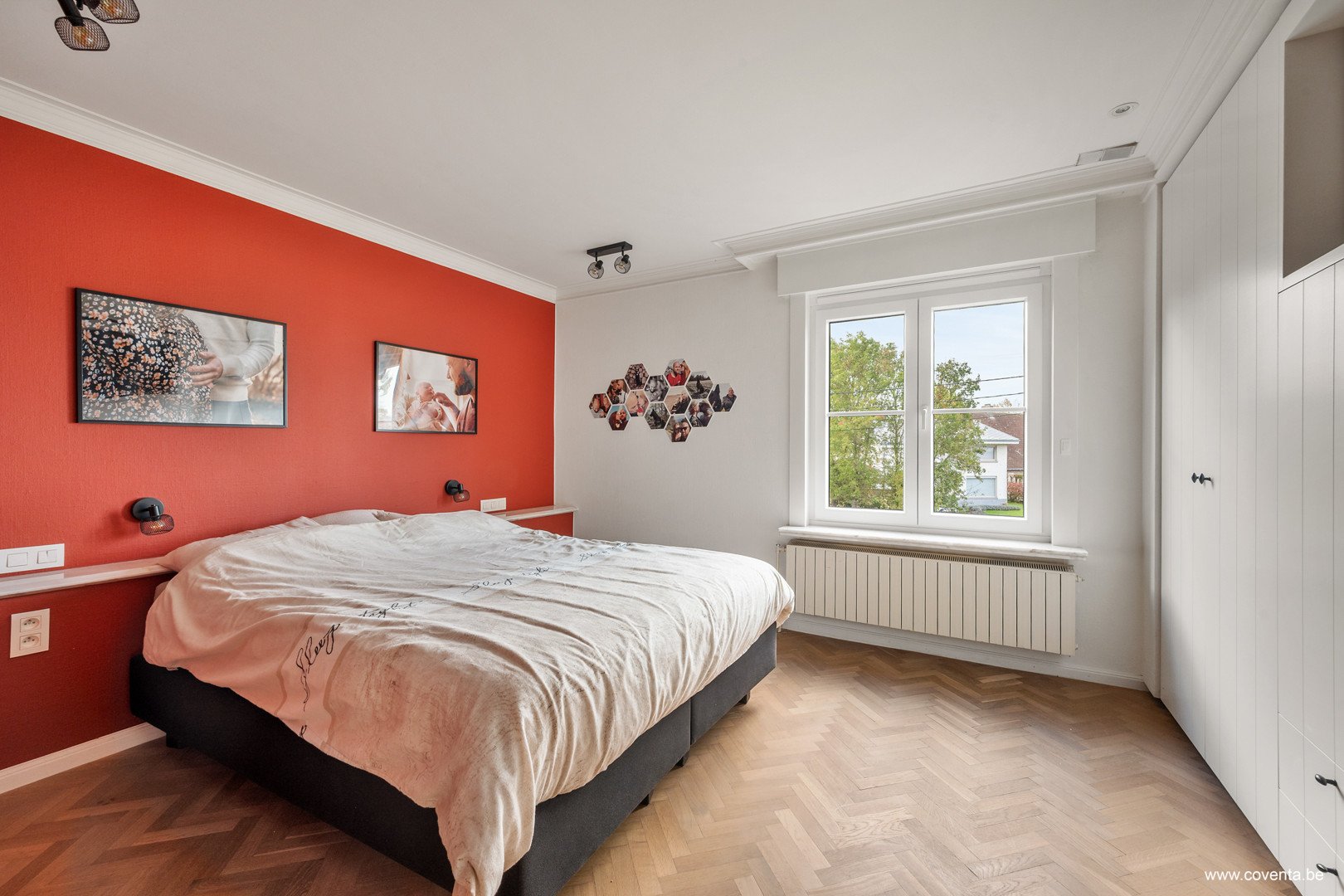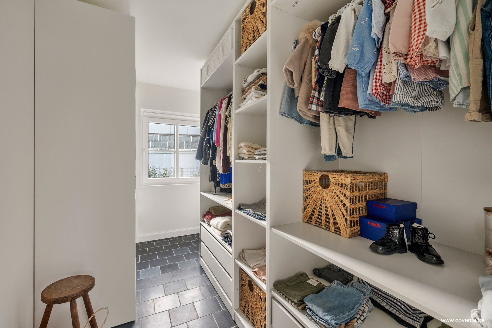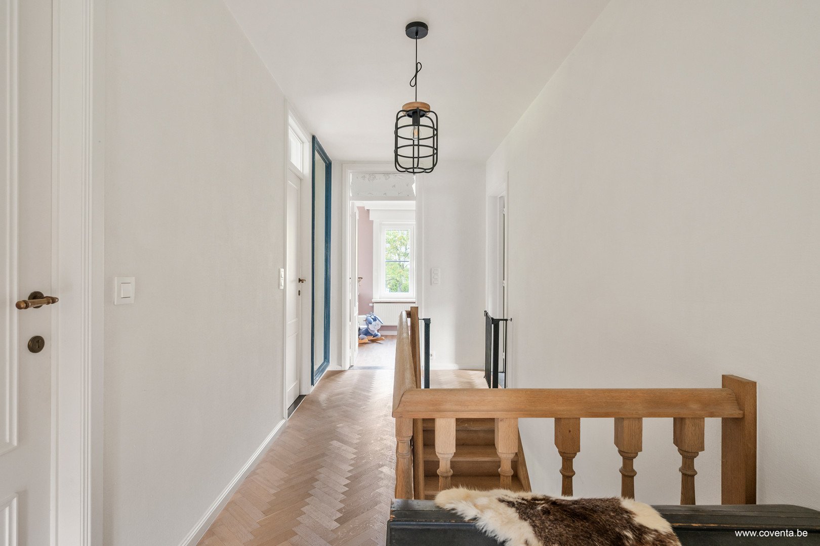 Op de verdieping hebben we de nachthal, toilet, 3 slaapkamers, aparte dressing en ingerichte badkamer met bad en inloopdouche en dubbele spoelbak. Geïsoleerde zolder.