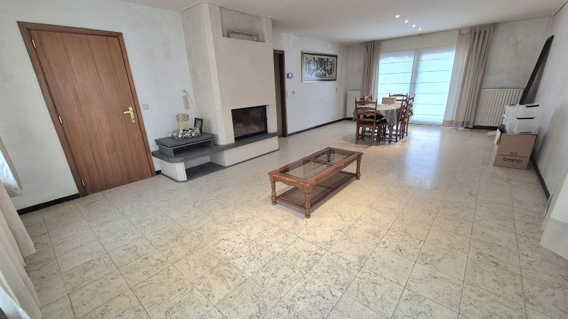 – Héél ruime lichtrijke living met salon, open haard (recente inbouwcassette 2002 met liftdeur), spanplafond (2016) met inbouwspots en eetplaats.