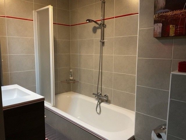 •Badkamer met ligbad/douche, lavabomeubel en toilet