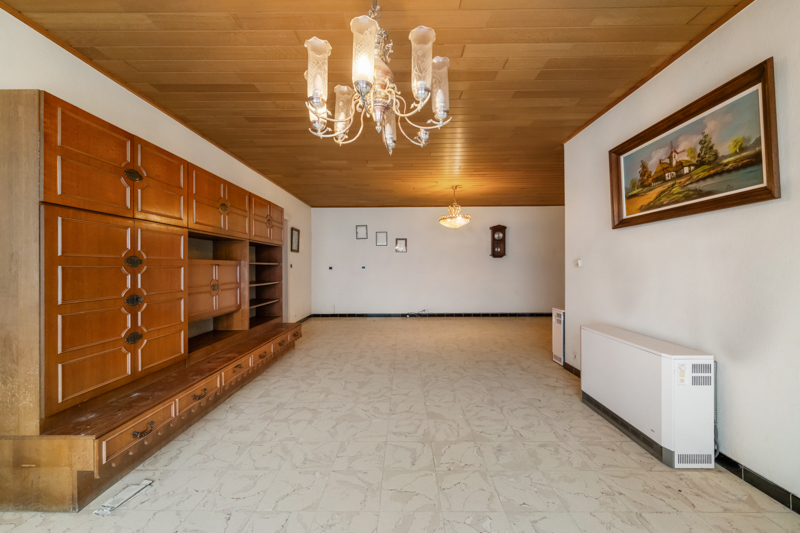 125m2 met grote living + salon en aansluitende keuken, bijkeuken, badkamer en berging – 2 slaapkamers