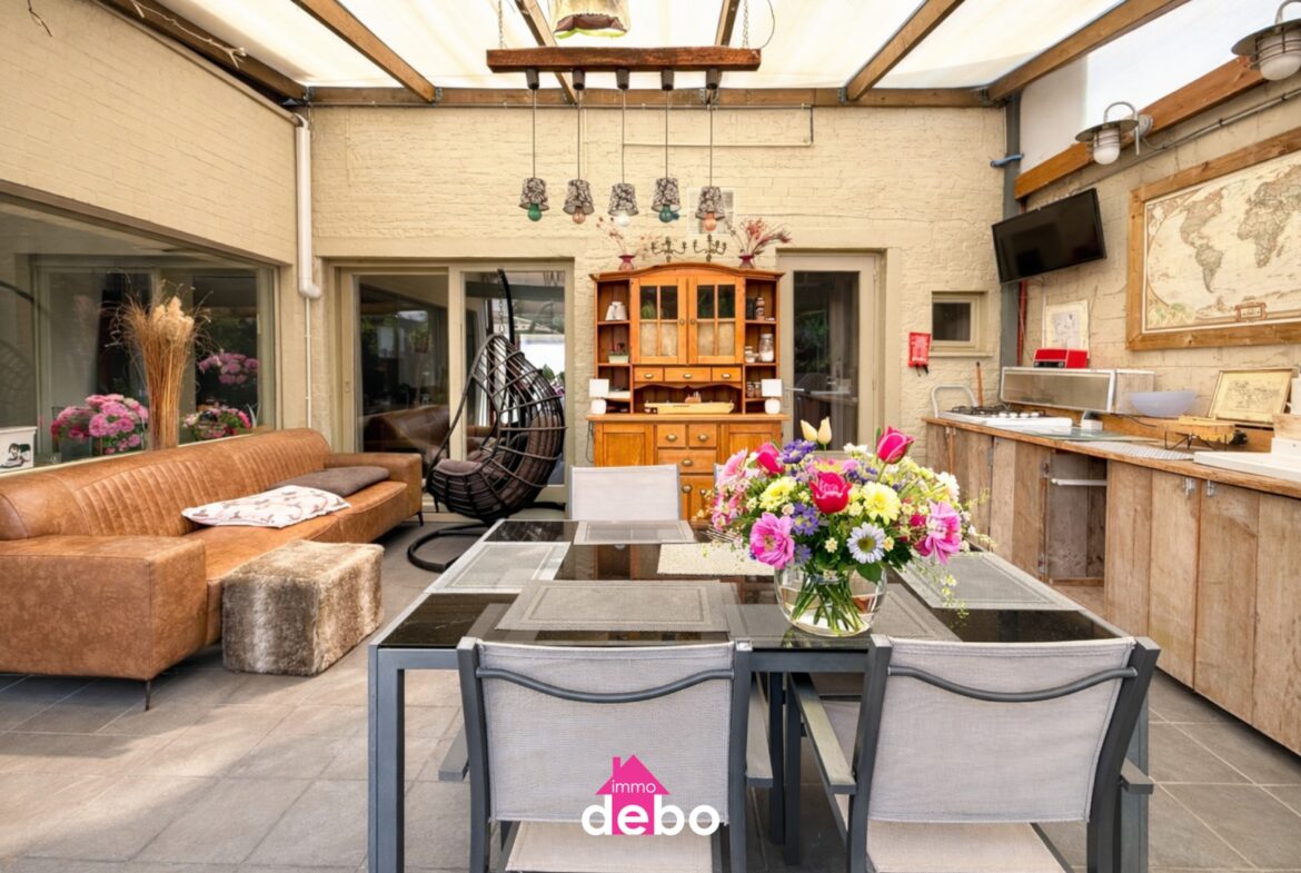 Bovendien is de woning uitgerust met 9 zonnepanelen, wat bijdraagt aan een lagere energiefactuur én een duurzame levensstijl. Blanco elektriciteitskeuring. EPC 295kWh/m² – Label C – UC 3674989. P-en G-score: D. Bevindt zich niet in een risicozone voor overstromingen. Grondopp. ca 237m², bewoonbare opp. ca 170m².