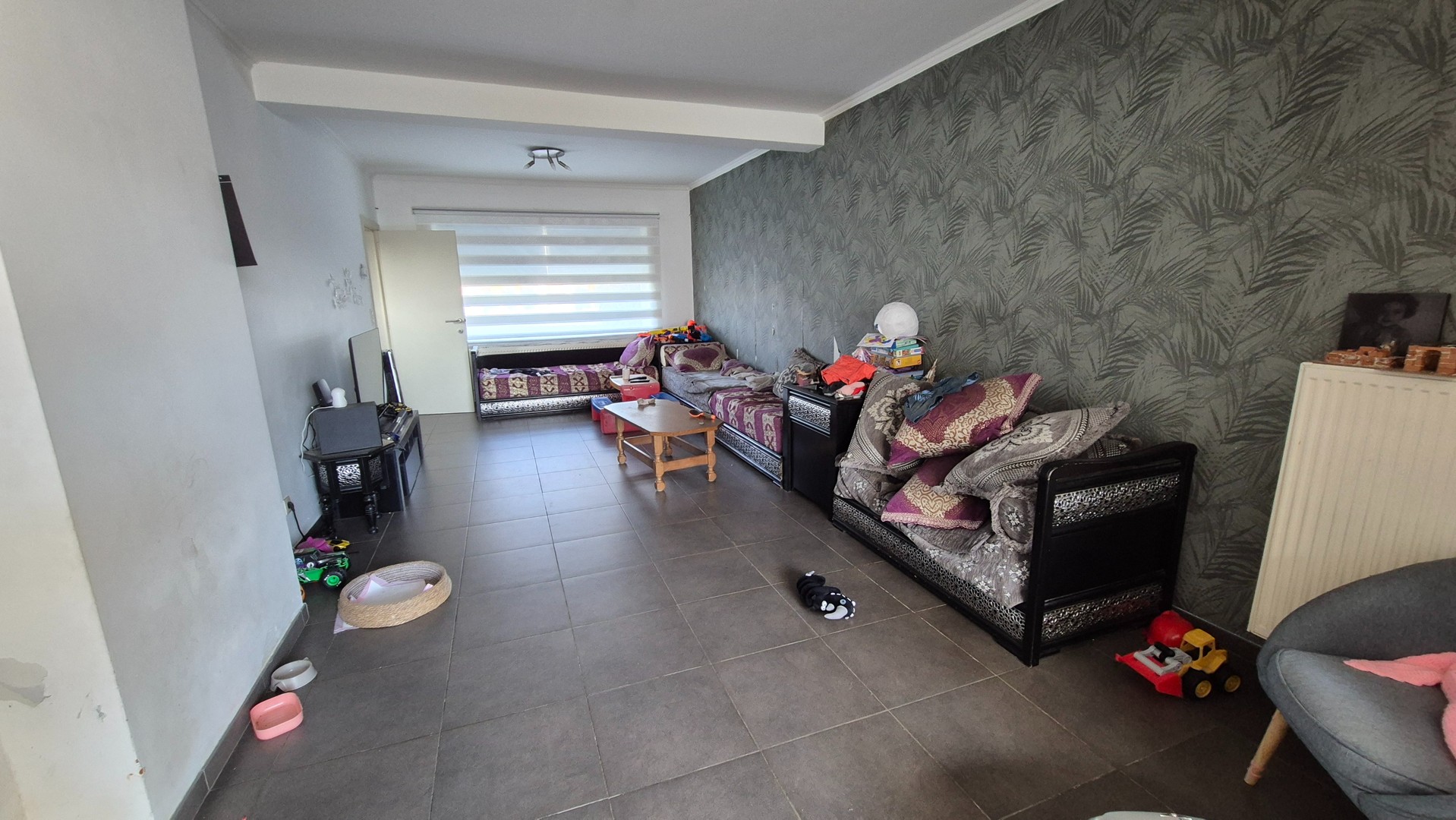 Bij het betreden van de woning wordt u verwelkomd in een ruime inkomhal met trap. De lichtrijke leefruimte met gezellige zithoek en eetplaats sluit naadloos aan op de royale leefkeuken, waar grote raampartijen een prachtig zicht bieden op de tuin.