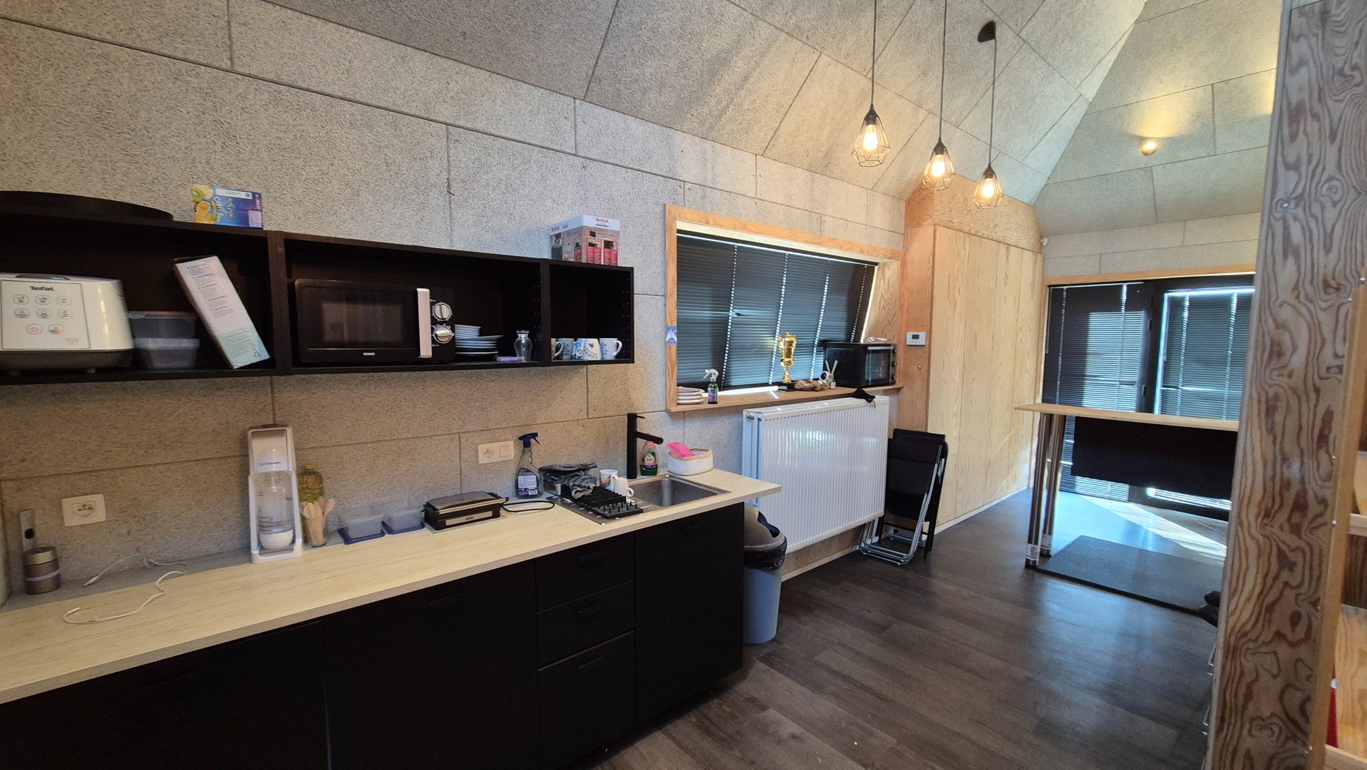 Naast de woning bevindt zich een volledig uitgerust kantoorgebouw met werkruimte, keuken, toilet, berging en zolder. Perfect geschikt voor een vrij beroep, praktijk, kantoor of zelfstandige activiteit, met duidelijke scheiding tussen wonen en werken.