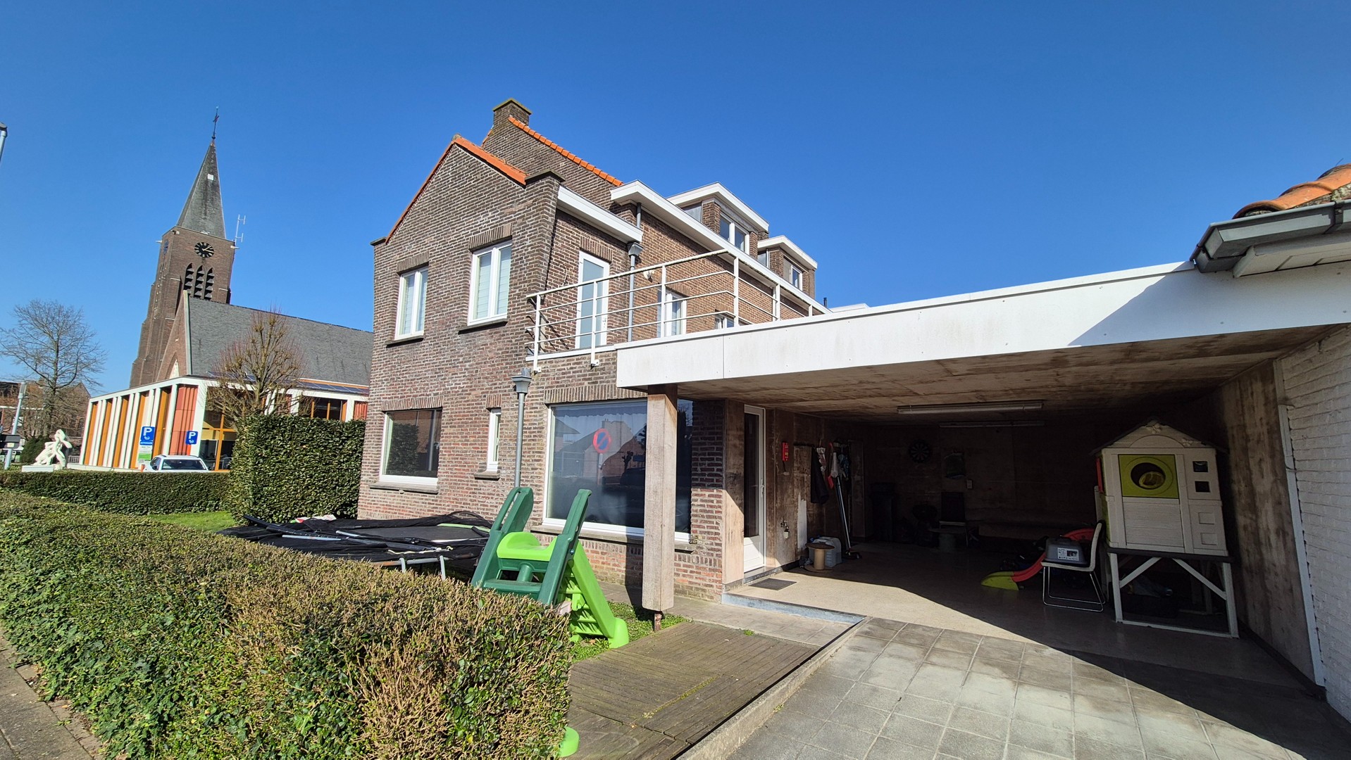 Verder beschikt het gelijkvloers over een bureauruimte, kelder, dubbele carport, binnenkoer en een charmante voortuin die meteen een gevoel van rust en privacy creëert.