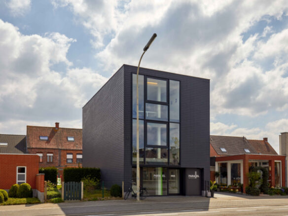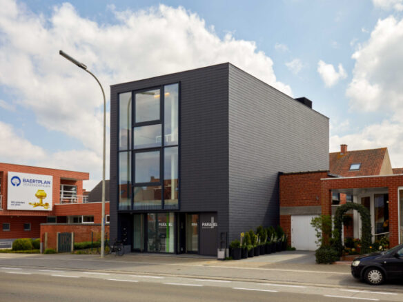 Roeselare-stadsrand : Trendy kantoorruimte van100-125m² in een recent gebouw met mogelijkheid tot huren van autostaanplaatsen.